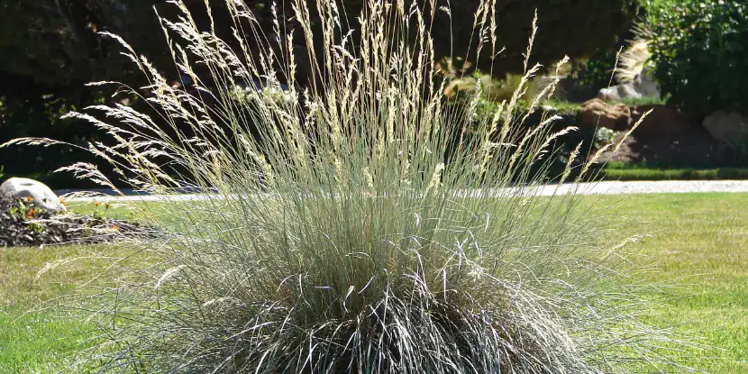 A clump of blue oat grass in a park.